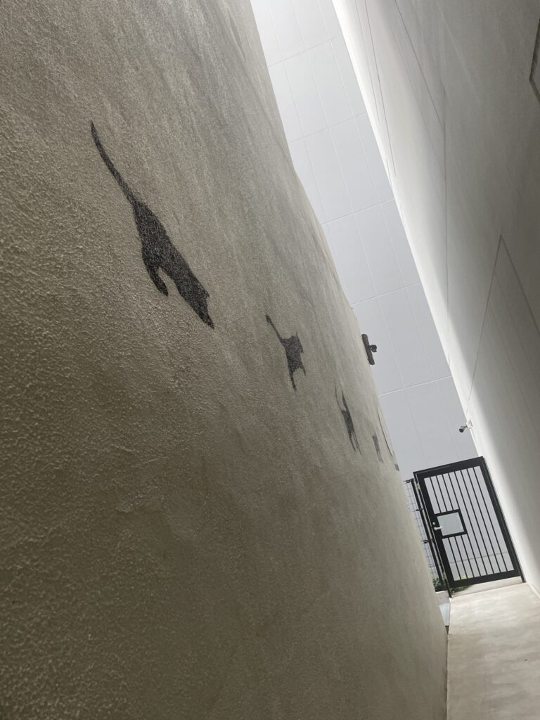 壁一面に猫の影絵がたくさんあっていいですね。